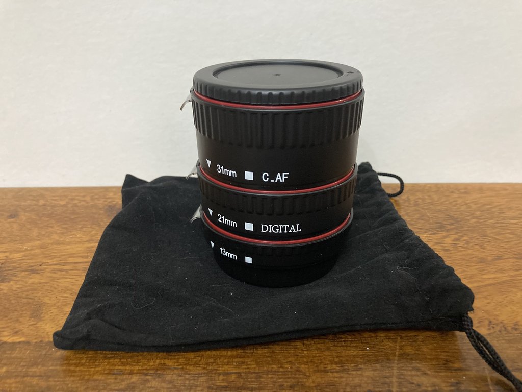 Durante uma pesquisa, encontrei estes anéis de extensão, que permitem utilizar objectivas EF/EF-S como objectivas macro, e consoante o número de anéis utilizados, poderemos aumentar o rácio de aumento/aproximação da imagem. Como tem contactos eléctricos, permitem AF e medições.